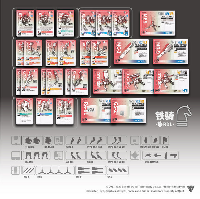 *每个机甲部件至少附带1张部件卡,某些部件有多个选项,因此部件卡的数量将超过模型数量。